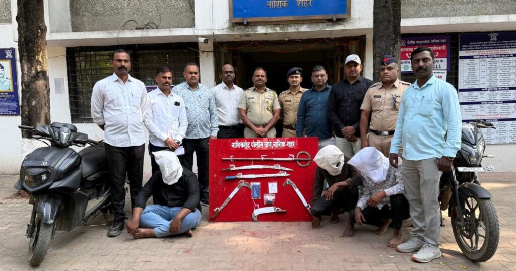 नाशिक। दि. १९ नोव्हेंबर २०२५: जेल रोड–शिवाजीनगर परिसरातील दहशत माजविणाऱ्या कोयता गँगचा पर्दाफाश करत नाशिक रोड पोलिसांच्या गुन्हेशोध पथकाने तीन युवक आणि दोन अल्पवयीनांना अटक केली असून, त्यांच्या ताब्यातून कोयते, तलवारीसह विविध घातक हत्यारे जप्त करण्यात आली आहेत.