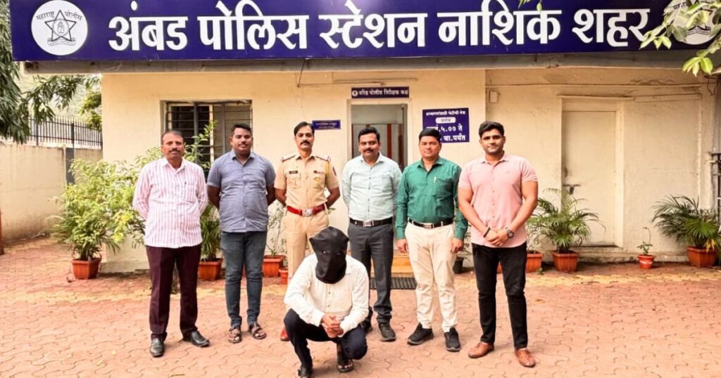 नाशिक। दि. २७ नोव्हेंबर २०२५: सराफ बाजार परिसरात एक लाख रुपयांची खंडणी मागणे, फिर्यादीच्या मुलाला मारहाण करणे तसेच घरावर दगडफेक करून वाहनाचे नुकसान केल्याप्रकरणी फरार असलेल्या संशयिताला गुन्हे शाखा अंबड पथकाने गंगापूर परिसरातून जेरबंद केले.