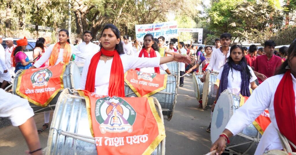 नाशिक। दि.२८ फेब्रुवारी २०२६: मराठी भाषा, साहित्य, संस्कृती, परंपरा, मराठी भाषा -अभिजात मराठीचा जागर करीत आणि ‘ज्ञानोबा माऊली, तुकारामा’च्या गजराने आज सकाळी कविवर्य कुसुमाग्रजांची नगरी अर्थात नाशिक शहर दुमदुमून निघाले होते. त्यात भर पडली होती ती लेझीम, ढोल वादनाची. निमित्त होते, चौथे विश्व मराठी संमेलनाचे. कविवर्य कुसुमाग्रज यांच्या निवासस्थानापासून आज सकाळी चौथ्या विश्व मराठी संमेलनानिमित्त शोभायात्रा काढण्यात आली. या शोभायात्रेत विद्यार्थ्यांसह हजारो नागरिक सहभागी झाले होते.