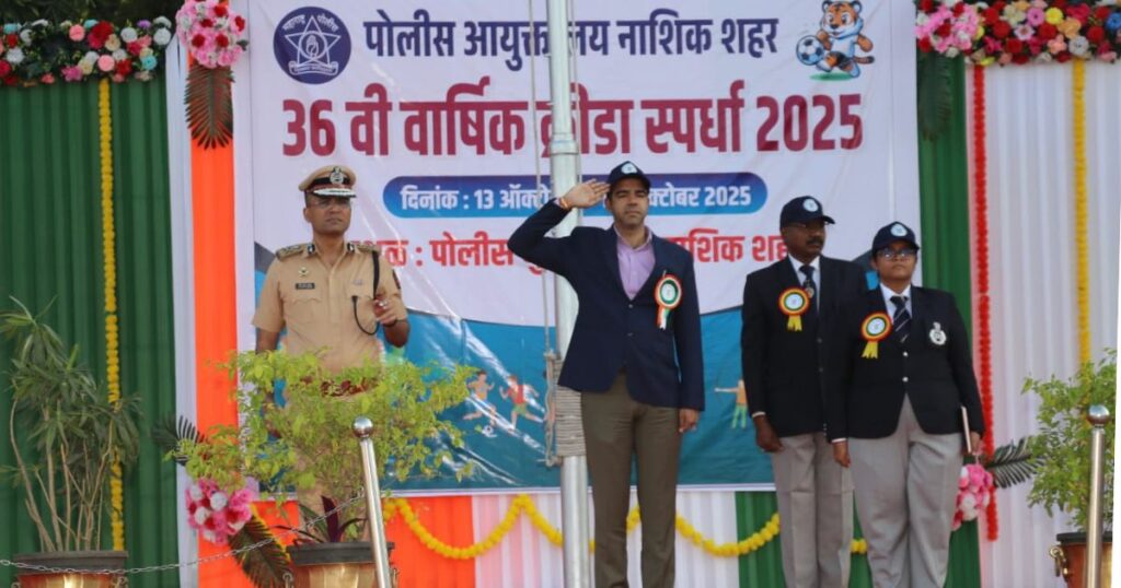 नाशिक। दि. १४ ऑक्टोबर २०२५: शहर पोलिस आयुक्तल्या आयोयित ३६ व्या वार्षिक क्रीडा स्पर्धेचे उद्घाटन महानगर प्रदेश विकास प्राधिकरण आयुक्त जलज शर्मा यांच्या हस्ते करण्यात आले. यावेळी पोलिस आयुक्त संदीप कर्णिक यांच्यासह अधिकारी उपस्थित होते.
