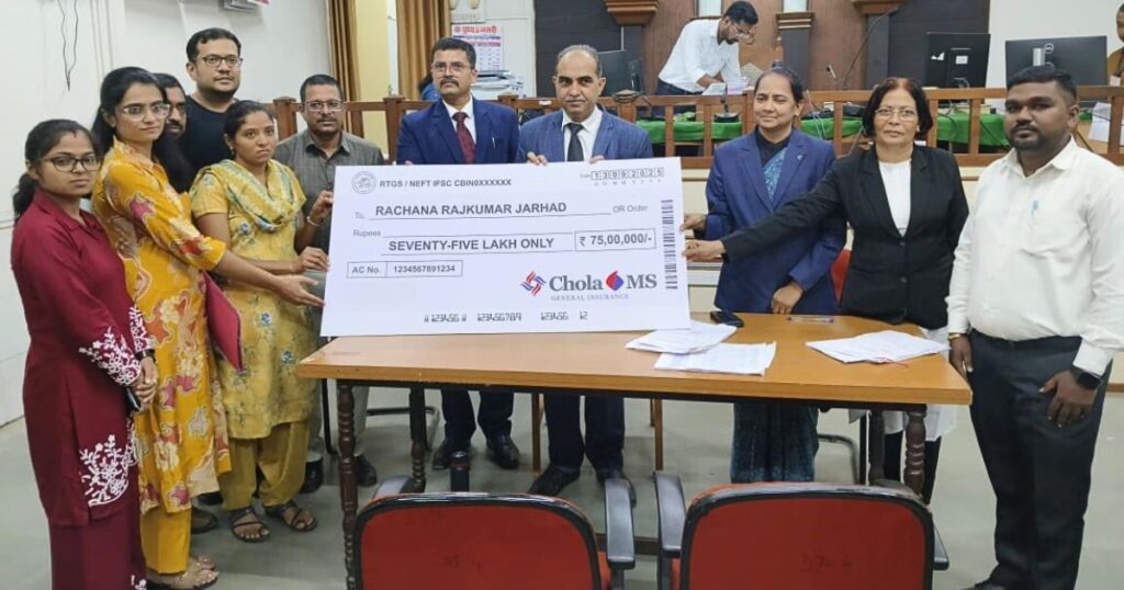 मोटार अपघात प्रकरणात 2019 साली राज्य परिवहन महामंडळाची बस व ट्रक मध्ये झालेल्या अपघात बसमधील प्रवाशाचा मृत्यू झाला होता. सदर अपघात नुकसान भरपाई प्रकरणात तडजोड होवून मयताच्या वारसास रक्कम रूपये 92 लाख इतकी नुकसान भरपाई मिळाली. 14 मार्च 2023 रोजी पक्षकार शरद कोठावदे यांची पत्नी शुभांगी कोठावदे या पार्कसाईड जवळ पायी चालत असतांना वेगाने येणाऱ्या कारने त्यांना बळीमंदिर चौकाजवळ धडक दिल्याने त्या गंभीर जखमी झाल्या होत्या. पक्षकारांच्या परस्पर सहमतीने रूपये 85 लाख रकमेची तडजोड करून वाद निकाली काढण्यात आला. सन 2023 मध्ये पाटबंधारे विभाग, संगमनेर येथील लिपिक राजकुमार जऱ्हाड हे मोटार सायकल व कार अपघातात मयत झाले होते. लोक अदालतीत उभय पक्षकारांनी परस्पर सहमतीने रूपये 75 लाख रकमेची तडजोड करून प्रकरण निकाली काढण्यात आले.