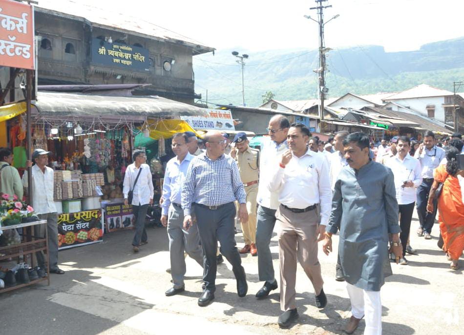 पालक सचिवडवले यांनी मंदिर परिसर, कुशावर्त, दर्शन पथ, संगम, प्रसाद व पूजा शेड, आखाड्यांचे अमृत शाही मार्ग बस स्टँड पार्किंग, बेजे येथील उपसा सिंचन प्रकल्प जागेची पाहणी केली.