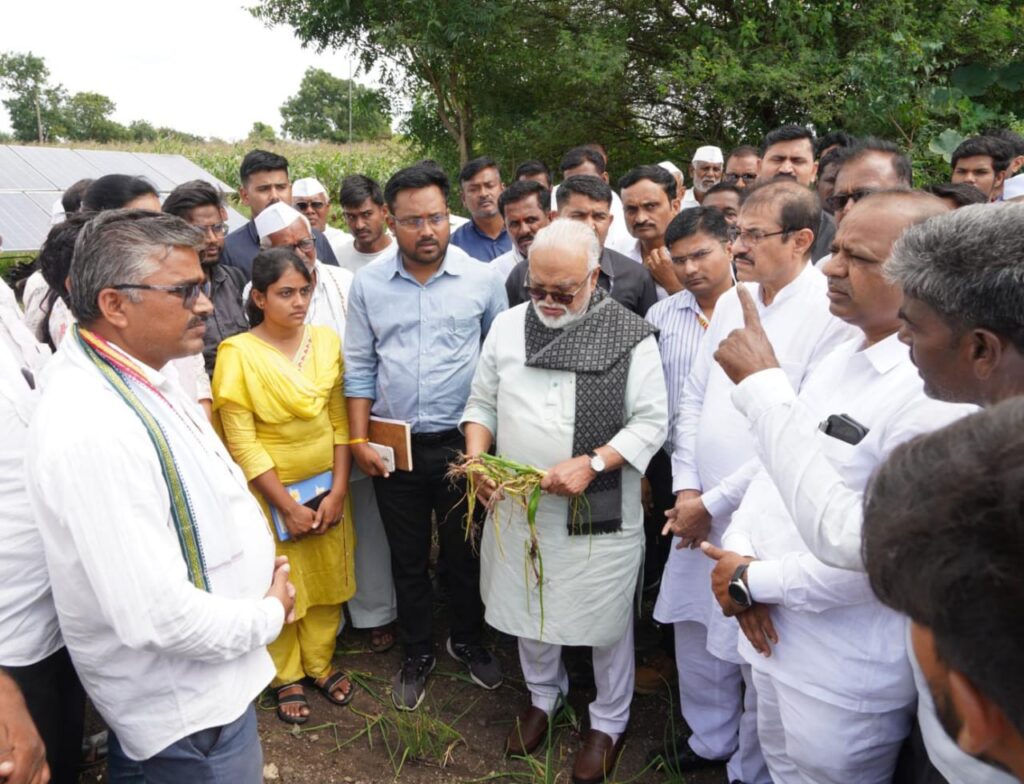 आज येवला व निफाड तालुक्यात अतिवृष्टीमुळे झालेल्या शेतपीकांच्या नुकसानीची पाहणी मंत्री छगन भुजबळ यांनी केली, यावेळी ते बोलत होते. यावेळी समवेत उपविभागीय अधिकारी बाबासाहेब गाढवे, निफाड तहसीलदार आबा महाजन, निफाड तहसीलदार विशाल नाईकवाडी, गट विकास अधिकारी संदीप वायाळ, गट विकास अधिकारी नम्रता जगताप, येवला तालुका कृषी अधिकारी शुभम बेरड, निफाड तालुका कृषी अधिकारी सुधाकर पवार, मंडळ अधिकारी रूपाली साळवे, ग्राम महसूल अधिकारी भारत नागरे, यांच्यासह अधिकारी, शेतकरी उपस्थित होते.