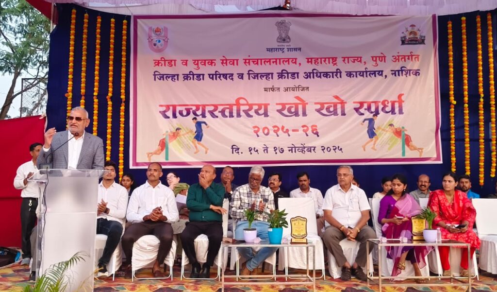 विभागीय क्रीडा संकुल येथे आयोजित शालेय राज्यस्तरीय खो-खो स्पर्धा सन 2025-26 च्या उद्घाटन प्रसंगी क्रीडा मंत्री ॲड. कोकाटे बोलत होते. या उद्घाटन प्रसंगी उपविभागीय अधिकारी अर्पिता ठुबे, क्रीडा व युवक सेवा उपसंचालक स्नेहल साळुंखे, जिल्हा क्रीडा अधिकारी सुनंदा पाटील, शिवछत्रपती पुरस्कार्थी अशोक दुधारे, जिल्हा क्रीडा अधिकारी (जळगाव) तथा विशेष कार्यकारी अधिकारी रवींद्र नाईक, ऑलिम्पियन दत्तू भोकनळ, आंतरराष्ट्रीय खेळाडू आकाश शिंदे, तालुका क्रीडा अधिकारी संजीवनी जाधव, अविनाश टिळे, सर्वेश देशमुख, शिवप्रसाद घोडके, निवड समिती सदस्य राजेंद्र साप्ते, श्वेता गवळी, निकिता पवार, प्रिती करवा, दिगंबर वेरणेकर, महेश पलांडे, आंतरराष्ट्रीय खेळाडू भूमिका नेहते, रेश्मा राठोड, नाशिक जिल्हा खो-खो संघटनेचे मंदार देशमुख, उमेश आटवणे, नाशिक सायकलिस्ट फाउंडेशनचे राजेंद्र वानखेडे यांच्यासह क्रीडा अधिकारी, क्रीडा शिक्षक व स्पर्धक विद्यार्थी उपस्थित होते.