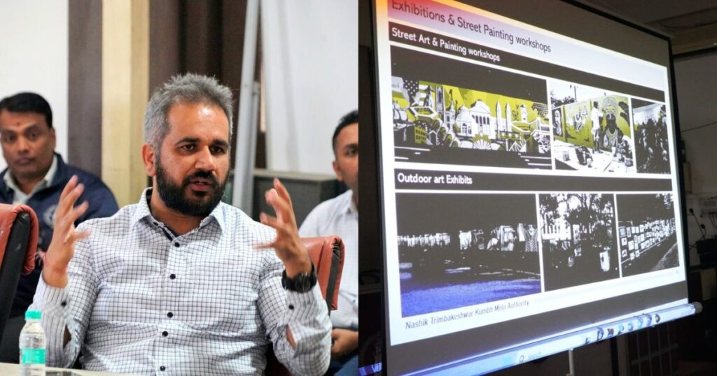 नाशिक। दि. २७ डिसेंबर २०२५: नाशिक त्र्यंबकेश्वर येथे आगामी काळात होणाऱ्या कुंभमेळ्यानिमित्त राज्य शासनाच्या माध्यमातून विविध विकास कामे सुरू आहेत. या विकास कामांबरोबरच या दोन्ही शहरांचे सौंदर्यीकरण, संवर्धन महत्वाचे आहे. सौंदयीकरणात जिल्ह्याला लाभलेले अध्यात्म, ऐतिहासिक, सांस्कृतिक, पौराणिक वारश्याचे प्रतिबिंब उमटले पाहिजे. त्यासाठी या क्षेत्रातील कलावंत, तज्ज्ञ व्यक्तींनी पुढे येऊन सहकार्य करावे, असे आवाहन नाशिक त्र्यंबकेश्वर कुंभमेळा विकास प्राधिकरणाचे आयुक्त शेखर सिंह यांनी येथे केले.